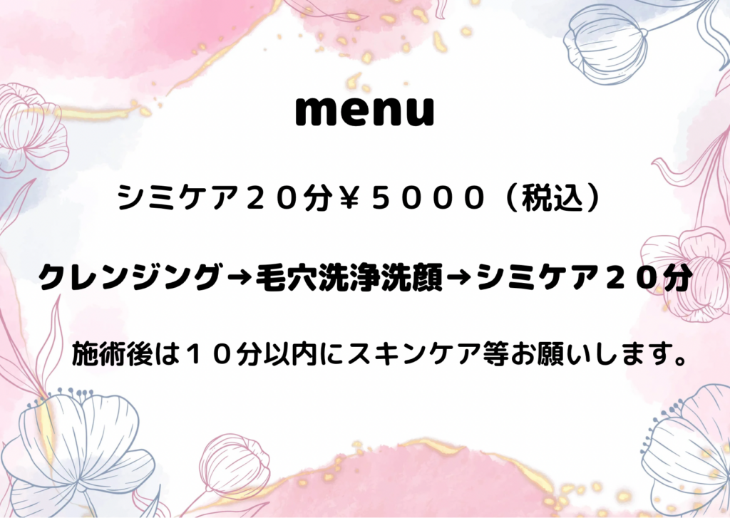 そんなニーズにお応えするためにも、当時働いていたところを退職し、シミケアのみに特化した【シミケア専門店 わたあめ】を開業し、一人でも多くのシミにお悩みの方のお力になれるようリーズナブルな価格設定やシミケアの機械にこだわり施術を行っています。